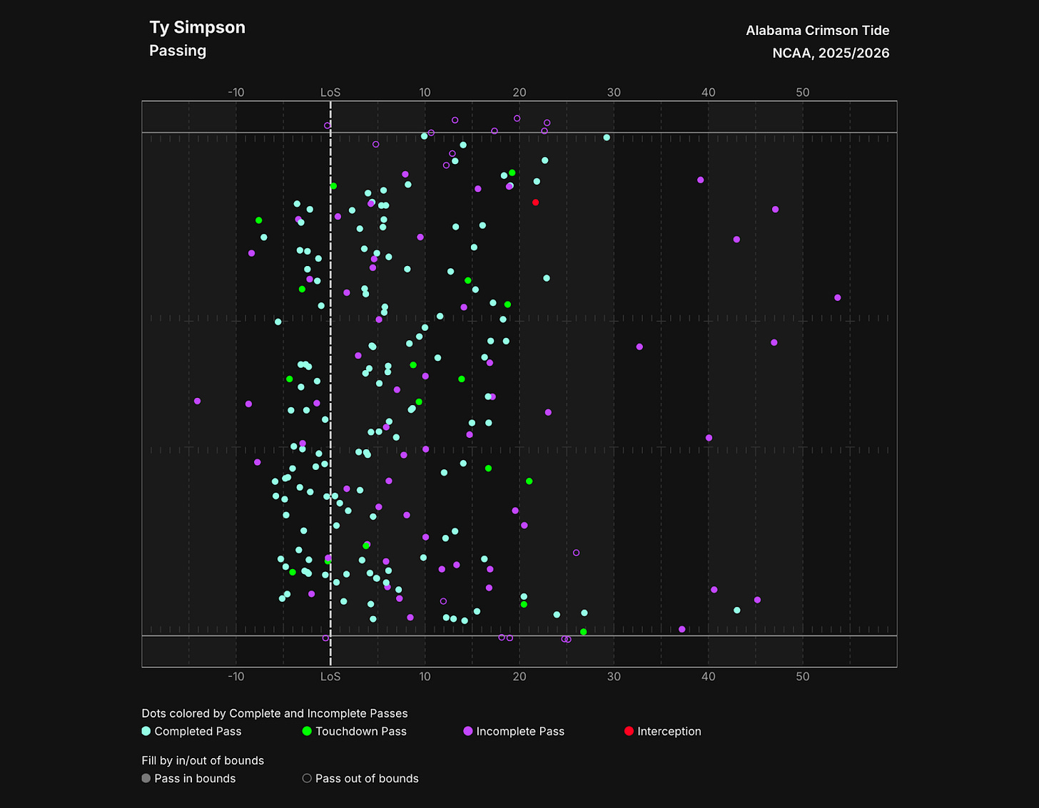 He’s made more NFL throws in eight games than a lot of college quarterbacks make over their entire careers. His pre-snap responsibilities far exceed what is normally asked of a college quarterback, and he consistently displays his command of the offense, adjusting protections at the line or checking out of a bad look. He has fewer starts than every legitimate 2026 prospect, but is already a better anticipation thrower with advanced pocket movement and sharp coverage recognition. Considering how much he developed on the bench, I’m fascinated to see what the “battle-tested” version of Simpson looks like.