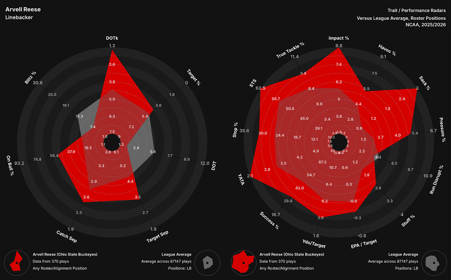 Reese has All-Pro upside as an edge defender or off-ball linebacker, and I initially didn’t have a strong opinion regarding his NFL position. But his pass-rushing tape over the last few weeks has been dominant, and I’m beginning to think he’s an edge at the next level.