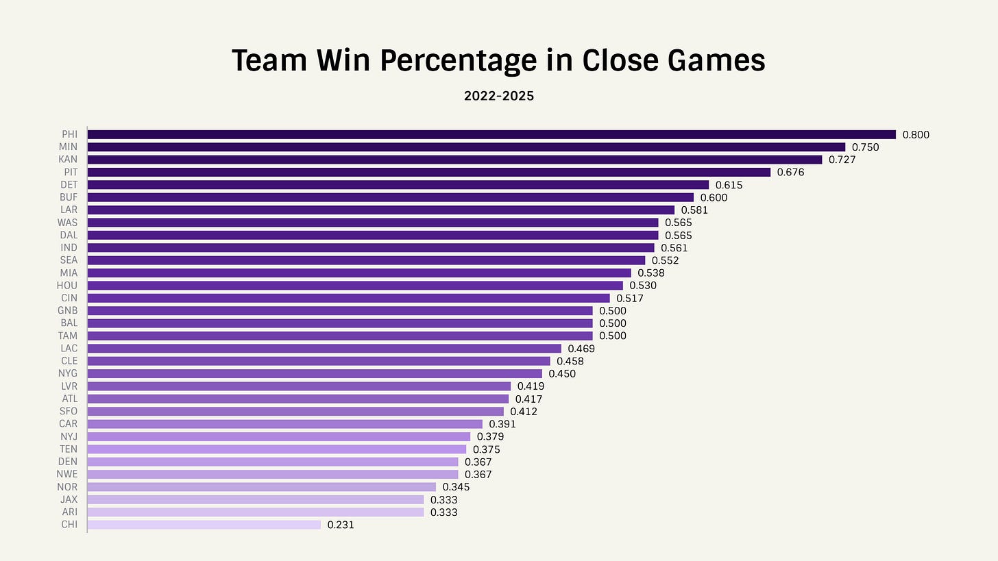 It is a benign fact that NFL teams cannot replicate their close-game success. It is a startling reality that the Minnesota Vikings have defied that logic; they, under Kevin O’Connell, are 27-9 in one-score games, a .750 winning percentage that exceeds all other NFL teams in the O’Connell era except the Philadelphia Eagles. The only other team close to the Eagles and Vikings in this statistic is the Kansas City Chiefs.