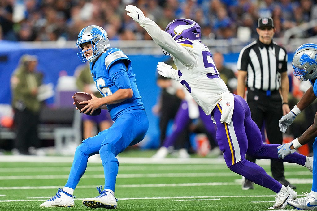 The Minnesota Vikings unleashed a torrent of pressure against Jared Goff and the Detroit Lions on Sunday, holding the explosive Lions’ offense in check for most of the game and ensuring the win.