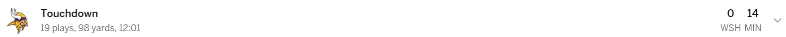 Touchdown, 19 plays, 98 yards, 12:01, WSH 0 - MIN 14.