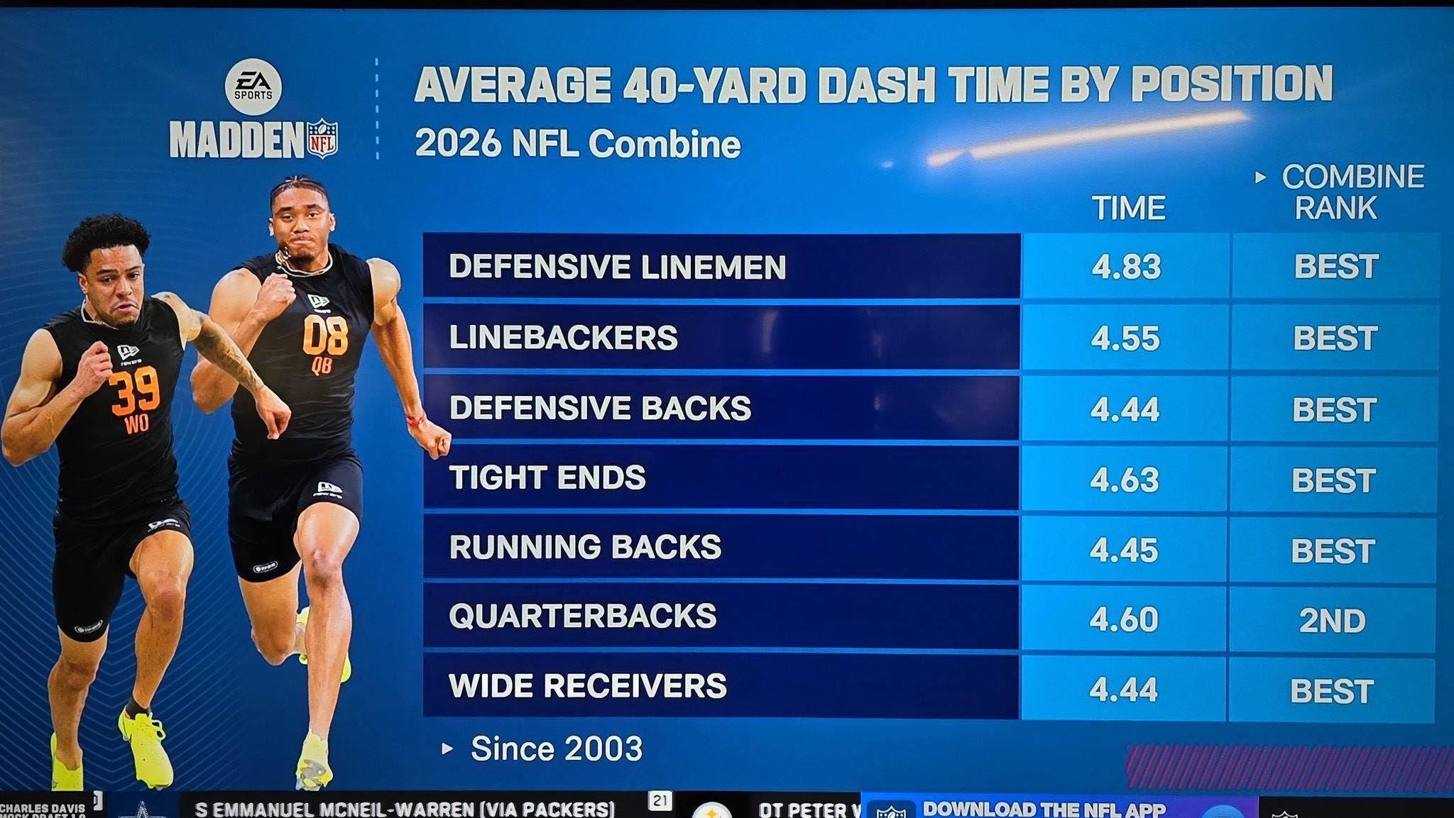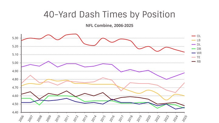First, we should validate these findings. Are players at the NFL Combine posting faster times?