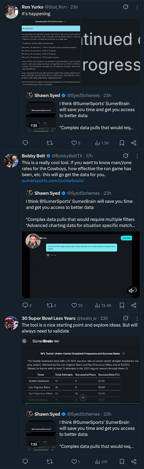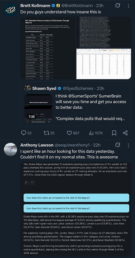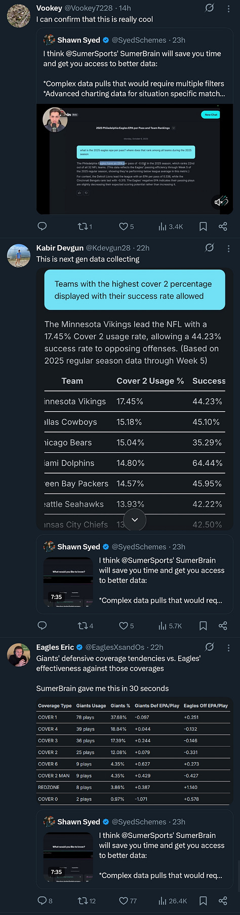 As for SumerBrain, Stopsky outlined some broad use cases but wanted to remain open-minded about how the product could be utilized. Personally, he used it to improve his high school coaching and produce on-the-fly research for podcast production. “There’s how I’m using it and then I see how Lindsay [Rhodes] uses it, to how people online use it ... it’s just not even in ways I would have thought.”