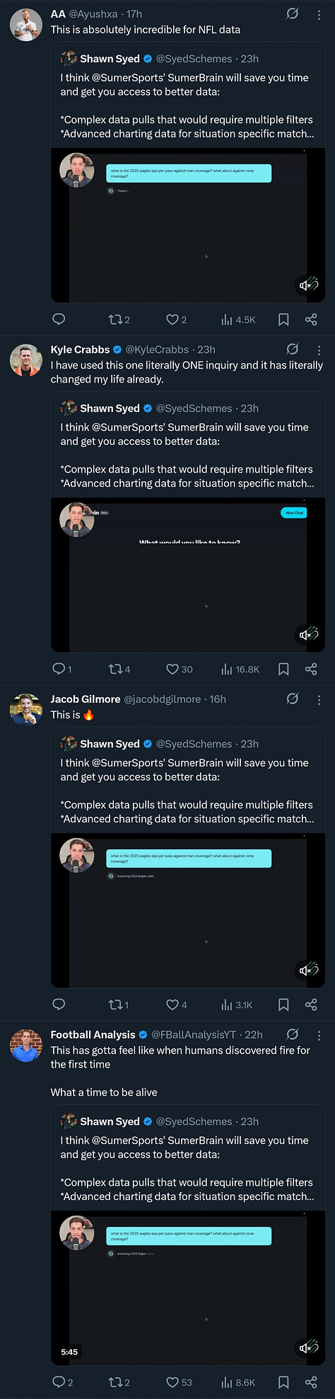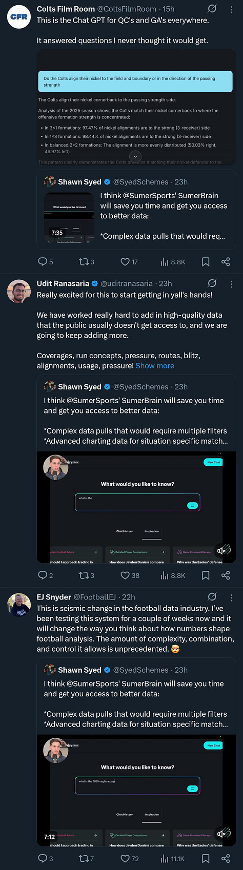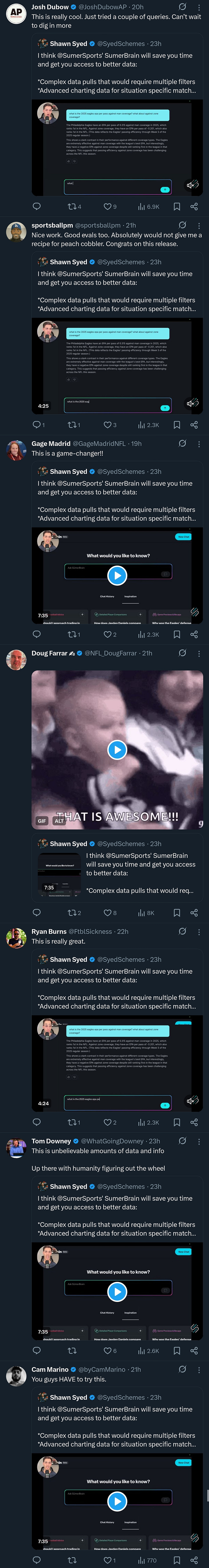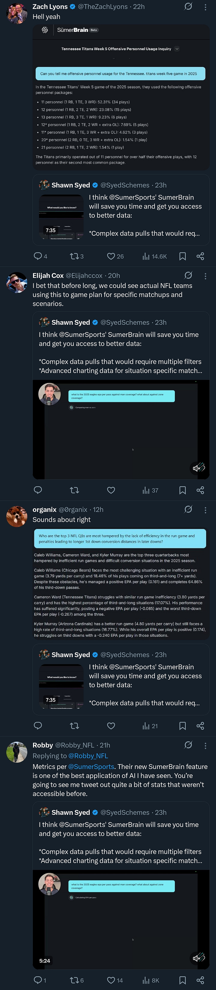 SumerBrain, an AI product, has been taking the sports data community by storm. Its launch was met with some amount of fanfare, including dozens of positive quote tweets of the launch video and several glowing podcasts.