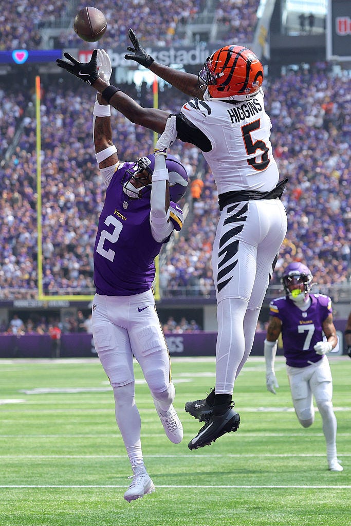 Then, in Week 3, the Vikings defense forced three interceptions and two fumbles en route to a beatdown. That time, it was of Jameis Winston’s Tampa Bay Buccaneers. This time, it was Jake Browning’s Cincinnati Bengals.