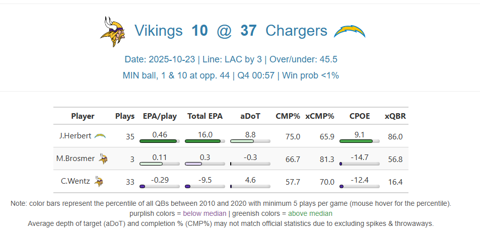 The Minnesota Vikings disassembled themselves on national television against the Los Angeles Chargers on Thursday Night Football. The 34-10 loss doesn’t mathematically eliminate the 3-4 Minnesota Vikings, but the season has hit a sour note, and it’s difficult to envision anything resembling success coming from the Vikings in the second half of the season.
